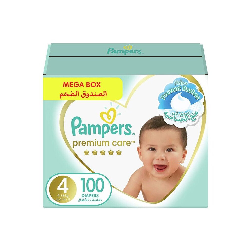 Pampers Premium Care Diapers, Size 4, For 9-14 Kg Baby, Mega Box, Pack of 100's