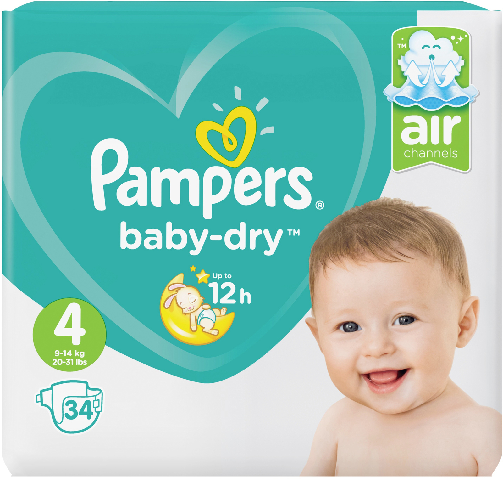 Pampers Baby Dry Diapers Size 4 from 9 to 14kg Content 34 Pieces