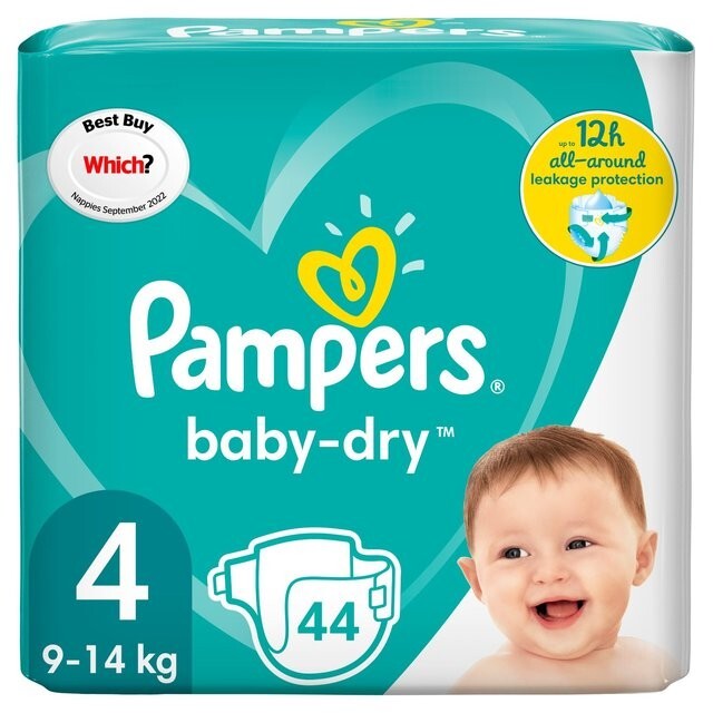 Pampers Baby-Dry Nappies, Size 4 (9-14kg) Essential Pack (44 per pack)