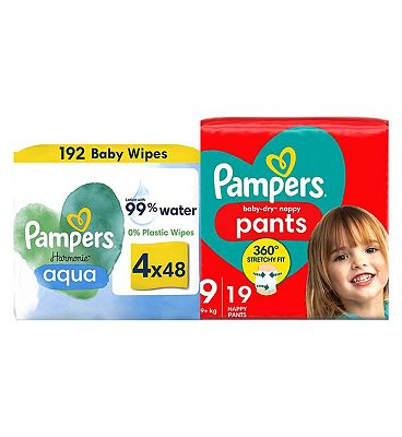 Pampers Baby Dry Pants Size 9 & Harmonie Aqua Wipes Bundle