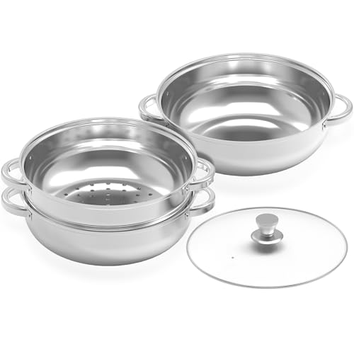 ZENO 28CM Steamer Pot | Cooking Pots | Food Vegetable Steamer | Stainless Steel Pot | Great For Vegetables, Seafood, Meat Cooker | Cooking Kitchen Pan Set | Large Metal Cooking Pots
