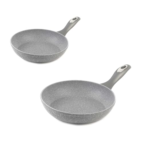 Salter 20cm & 28cm Non-Stick Frying Pan Set - Healthier Cooking with Little to No Oil, Induction Suitable, Durable Forged Aluminium, Marblestone, Grey