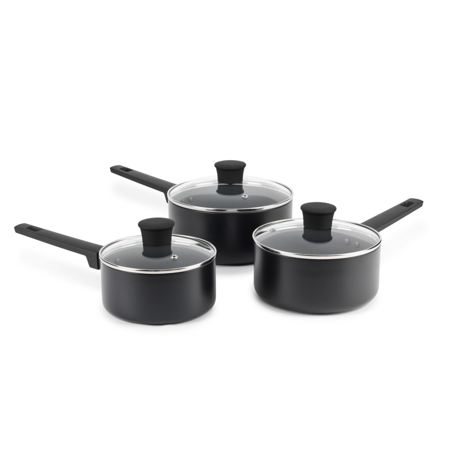 Salter BW05751S Megastone 3 Piece Pan Set - Non-Stick Cooking Pots, Induction Hob Suitable, 16/18/20 cm Saucepans, Durable Forged Aluminium Cookware, Includes Tempered Glass Lids, Dishwasher Safe