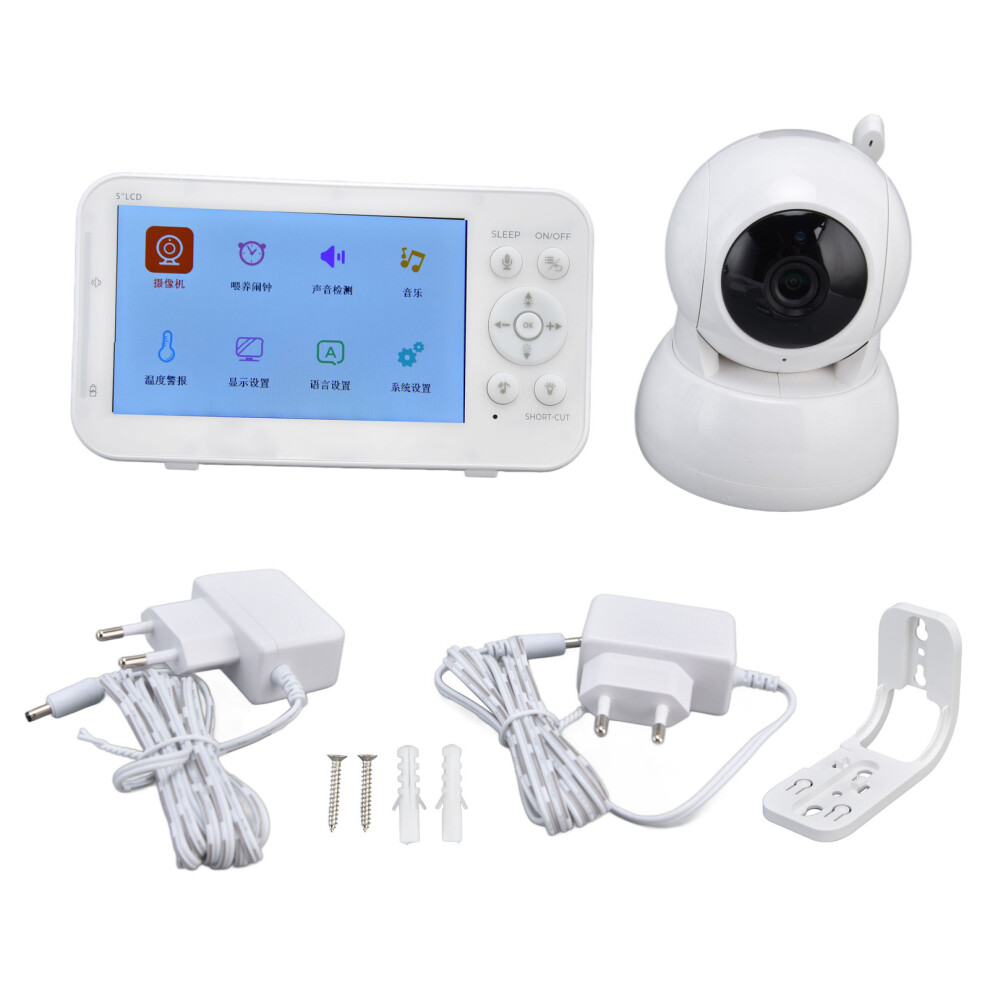 HelloBaby Monitor with Camera and Audio, 5'' Large Screen with 3500mAh Battery, Remote Pan-Tilt-Zoom Camera, Two-Way Talk, ECO-Mode, Auto-Night Visio