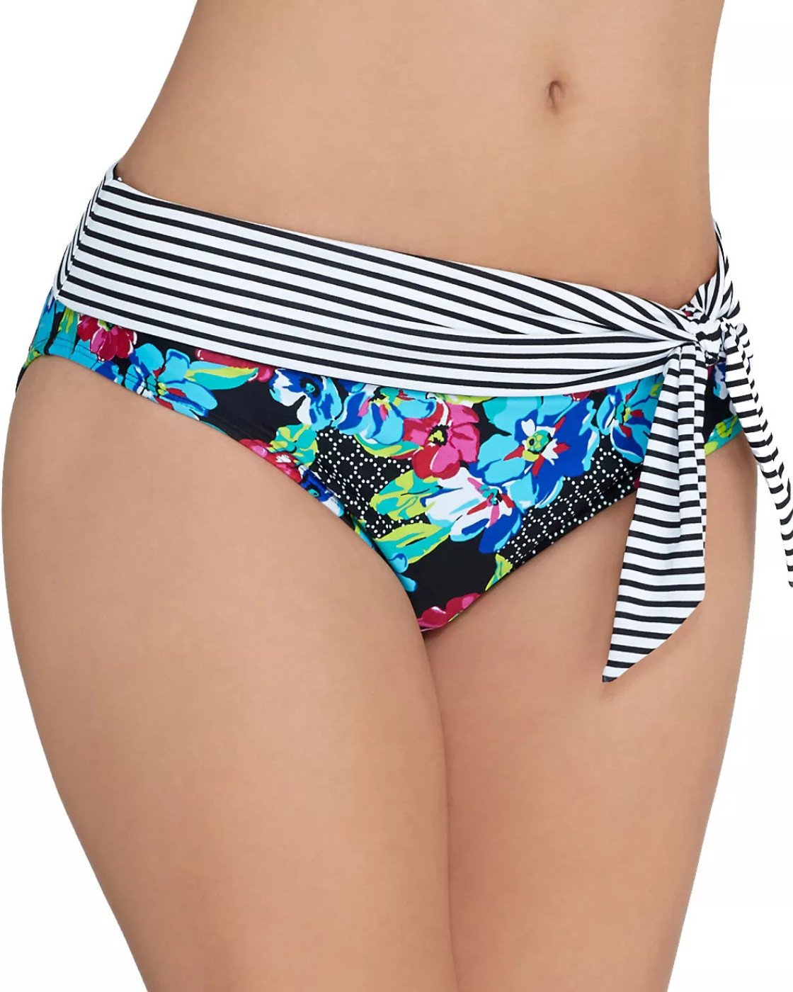 Panache Milano Bikini Brief Size 16 Navy Zigzag Floral Draw Side Bottom SW1159