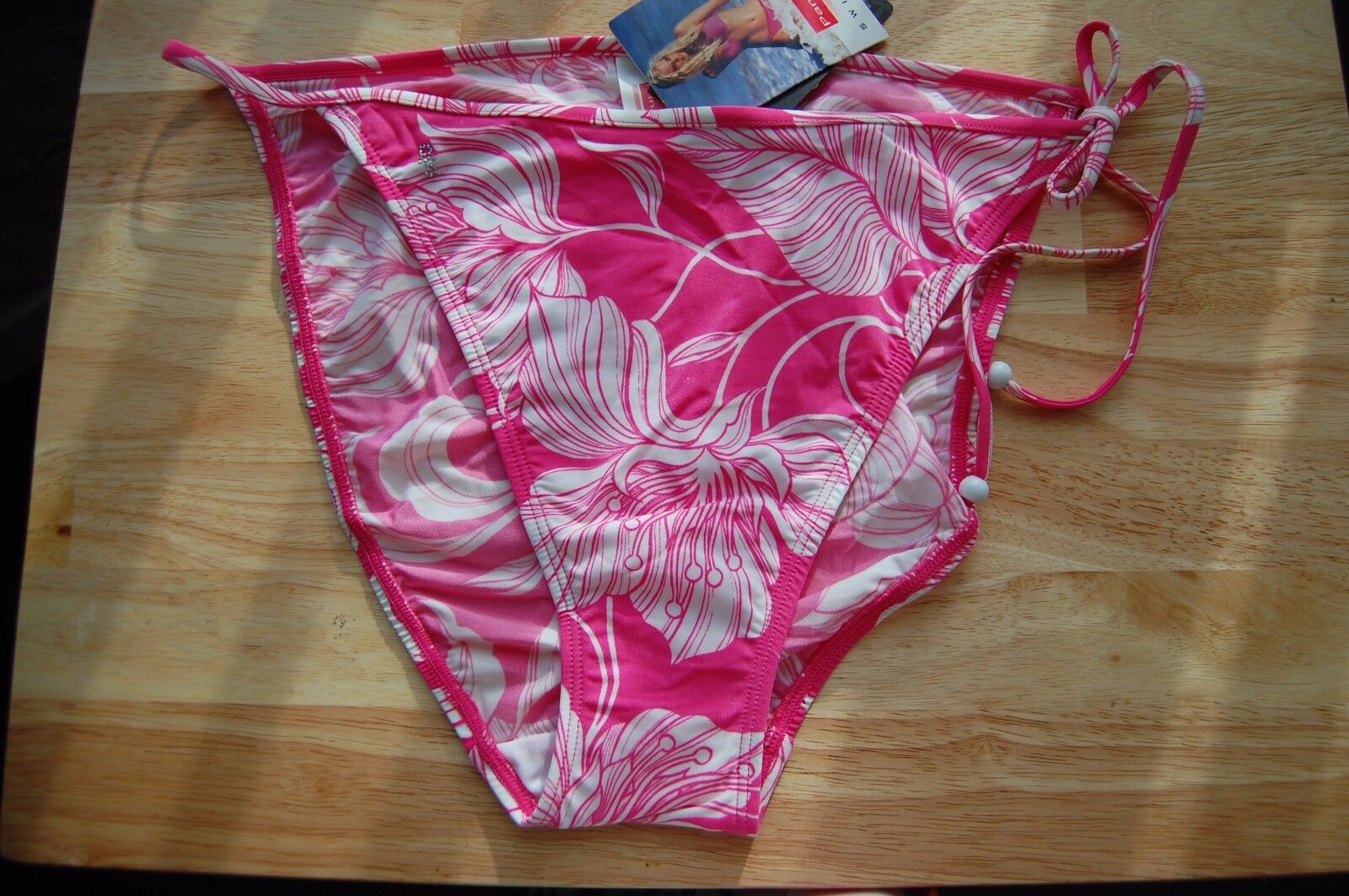 Panache Bikini Bottoms Tie Side Pink and White Size UK 14 BNWT