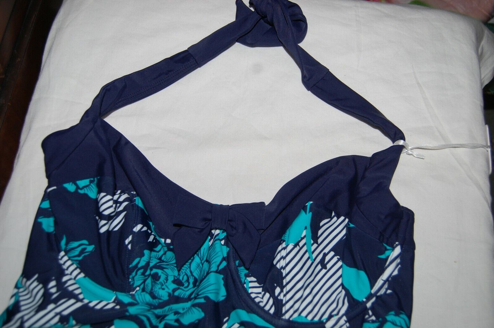 Panache Page Swimsuit Swimdress Halter Neck Navy Mix UK 32E EU 70E BNWT