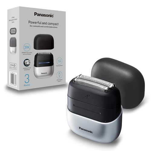 Panasonic ES-CM3BKS511 Series 700 3-Blade Compact Shaver, Wet & Dry Electric Shaver for Men, Beard Sensor, IPX7 Waterproof, USB-C Charging, AC USB Power Adaptor, Black