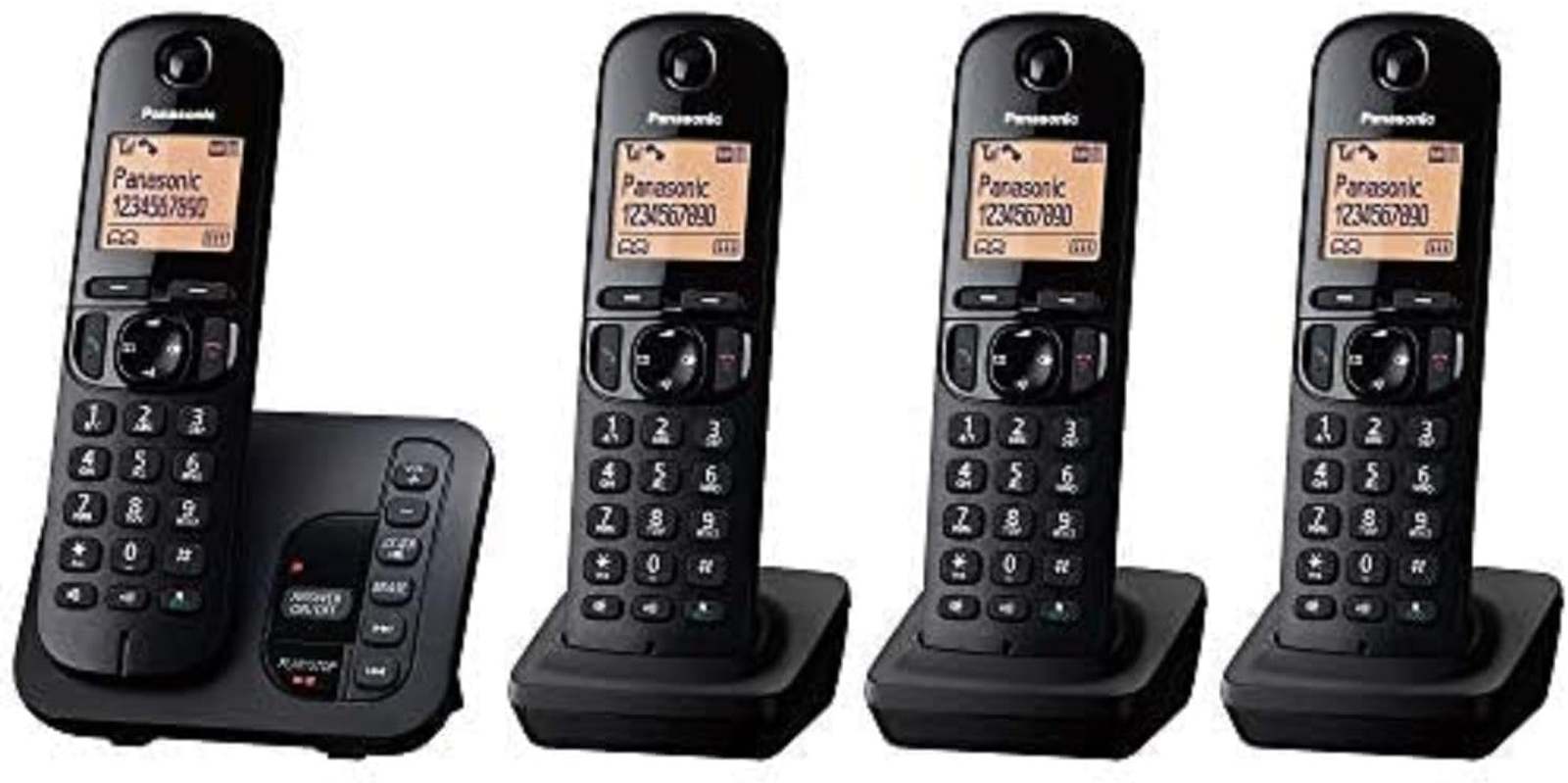 Panasonic KX-TGC224EB DECT Cordless Phone with Answering Machine, Black, 4 Pack