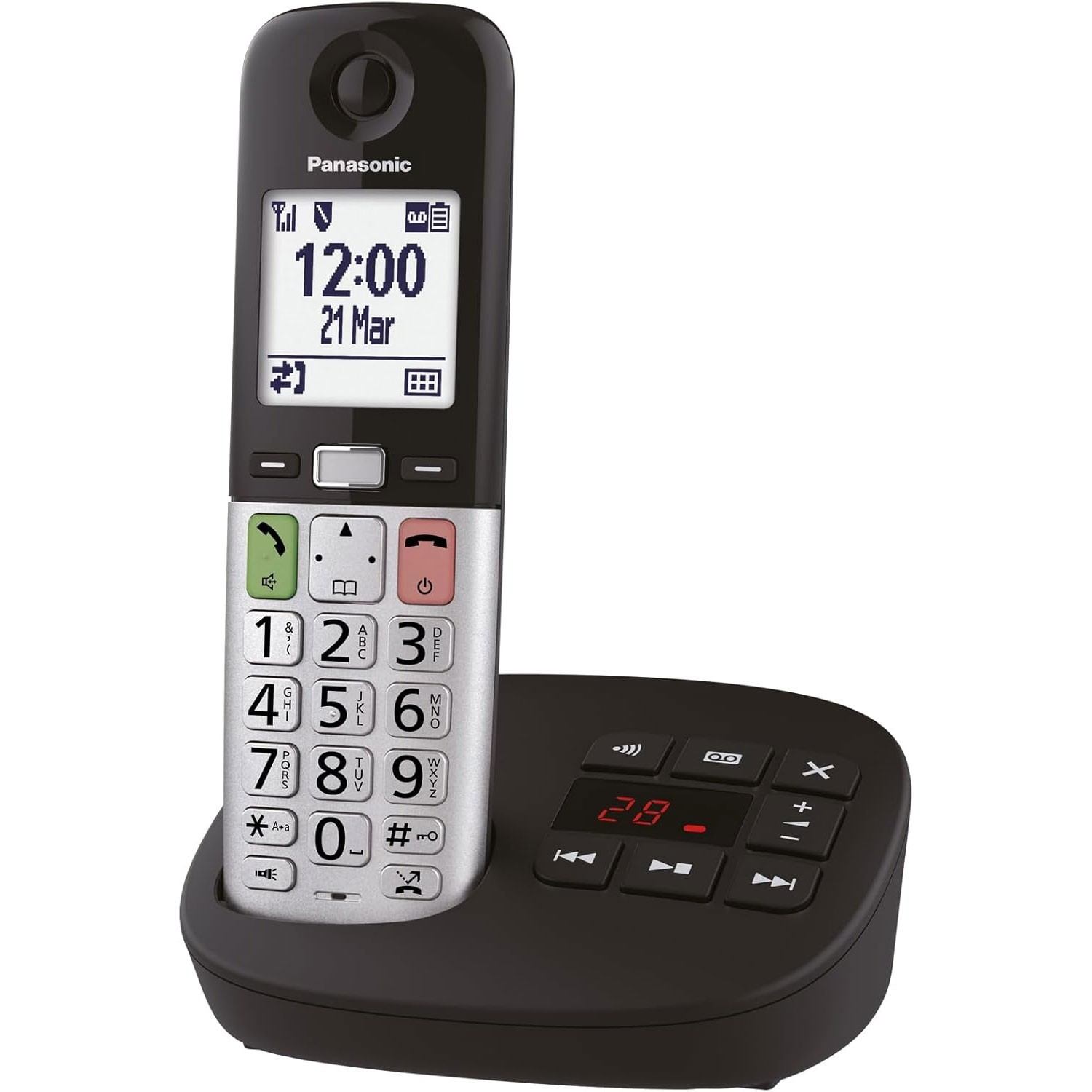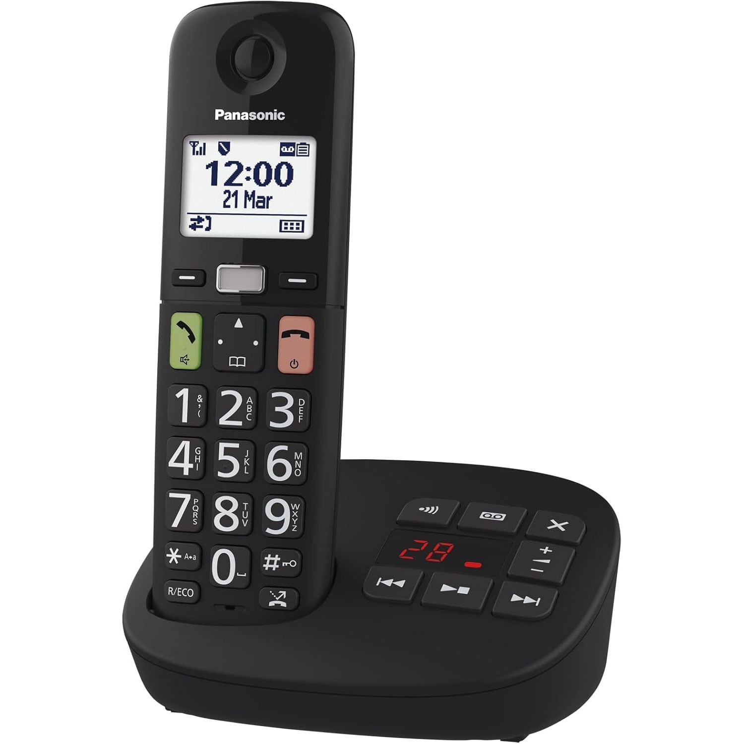Panasonic KXTGU130EB Cordless Phone w/ Answer Machine, Big Buttons, Loud Volume