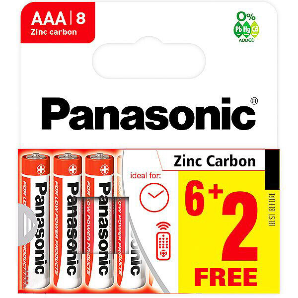 PANASONIC ZINC CARBON R03RZ/8HH AAA BATTERIES 8 PACK