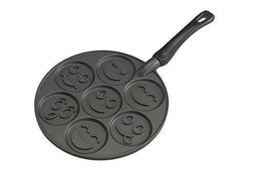 Nordic Ware Smiley Face Pancake Pan, Cast-Aluminium Frying Pan, Pan for 7 Pancakes, Mini Pancake Maker - Black, 10 1/2 inch diameter
