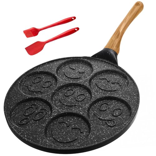 KOOSREEL Smilely Face Pancake Pan, Frying Pan Non Stick 7 Holes Mini Pancake Maker Aluminium Breakfast Fried Egg Burger Pan for Induction Hob Stove Gas