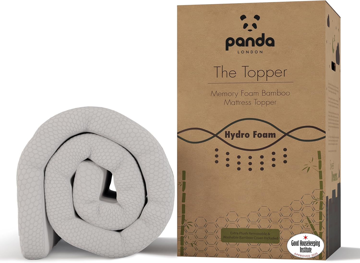 Panda Memory Foam Bamboo Mattress Topper (2024) (2024, UK Double)