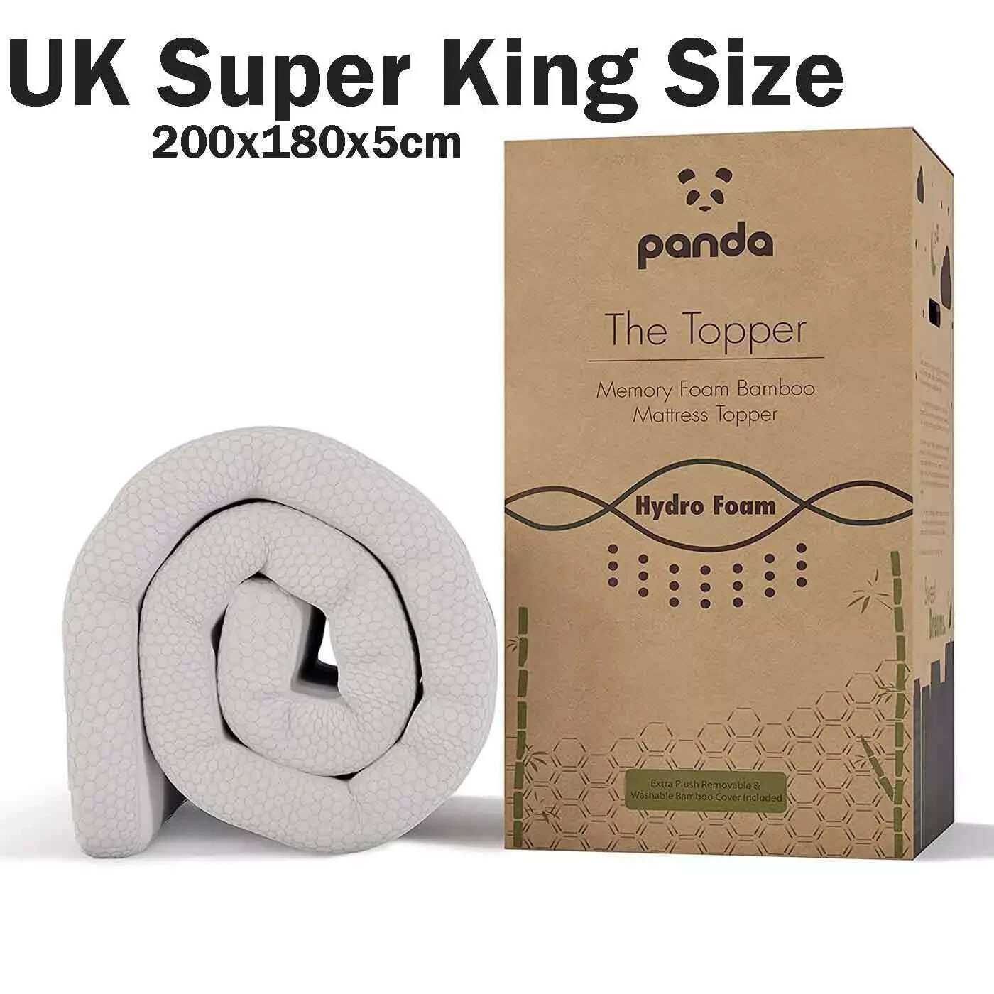 Panda Memory Foam Bamboo Mattress Topper Hydro UK Super King Bed Size 200x180cm