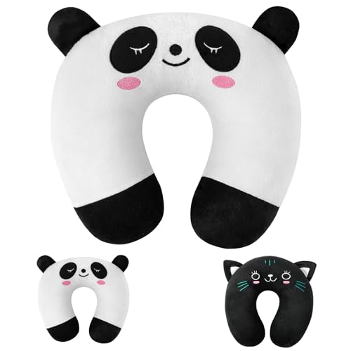 Alaoo Neck Pillow, Memory Foam Kids Travel Pillow for Children and Adults Support Heads Soft U-Shaped Head Neck Protector for Airplane Camping Car Sleeping, White Panda Pattern