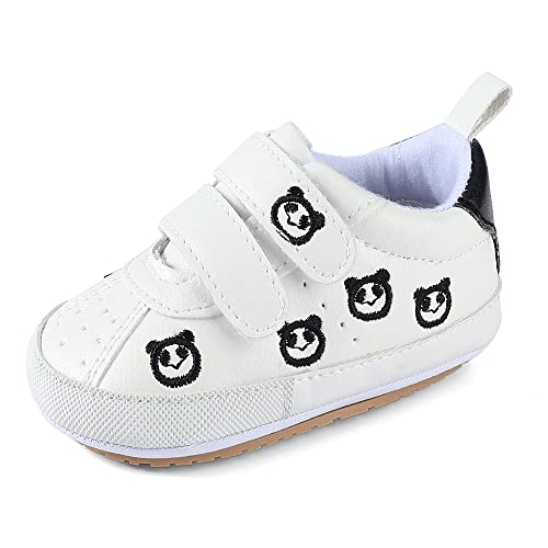 MK MATT KEELY Baby Boys Girls First Walking Shoes Toddler Infant Soft PU Leather Trainers with Anti-Slip Sole,Black Panda,6-12 Months