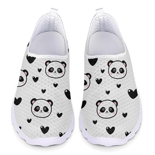Kuiaobaty Womens Lightweight Mesh Trainers Cute Panda Girls Running Shoes Anti Skid, Kawaii Panda Slip on Trainers for Jogging,Tennis