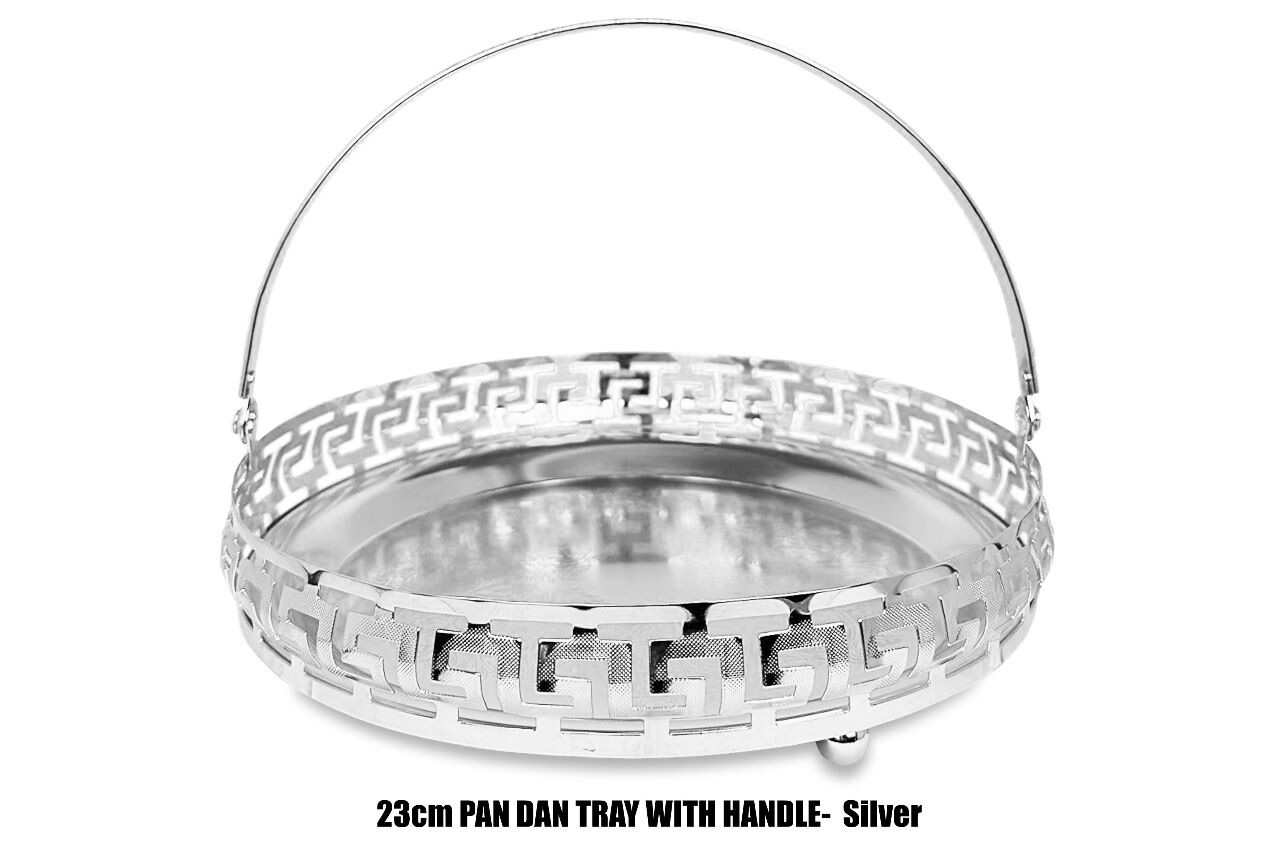 23cm Silver Plated Serving Tray Decorative Round Tray Holder Pandan With Handle