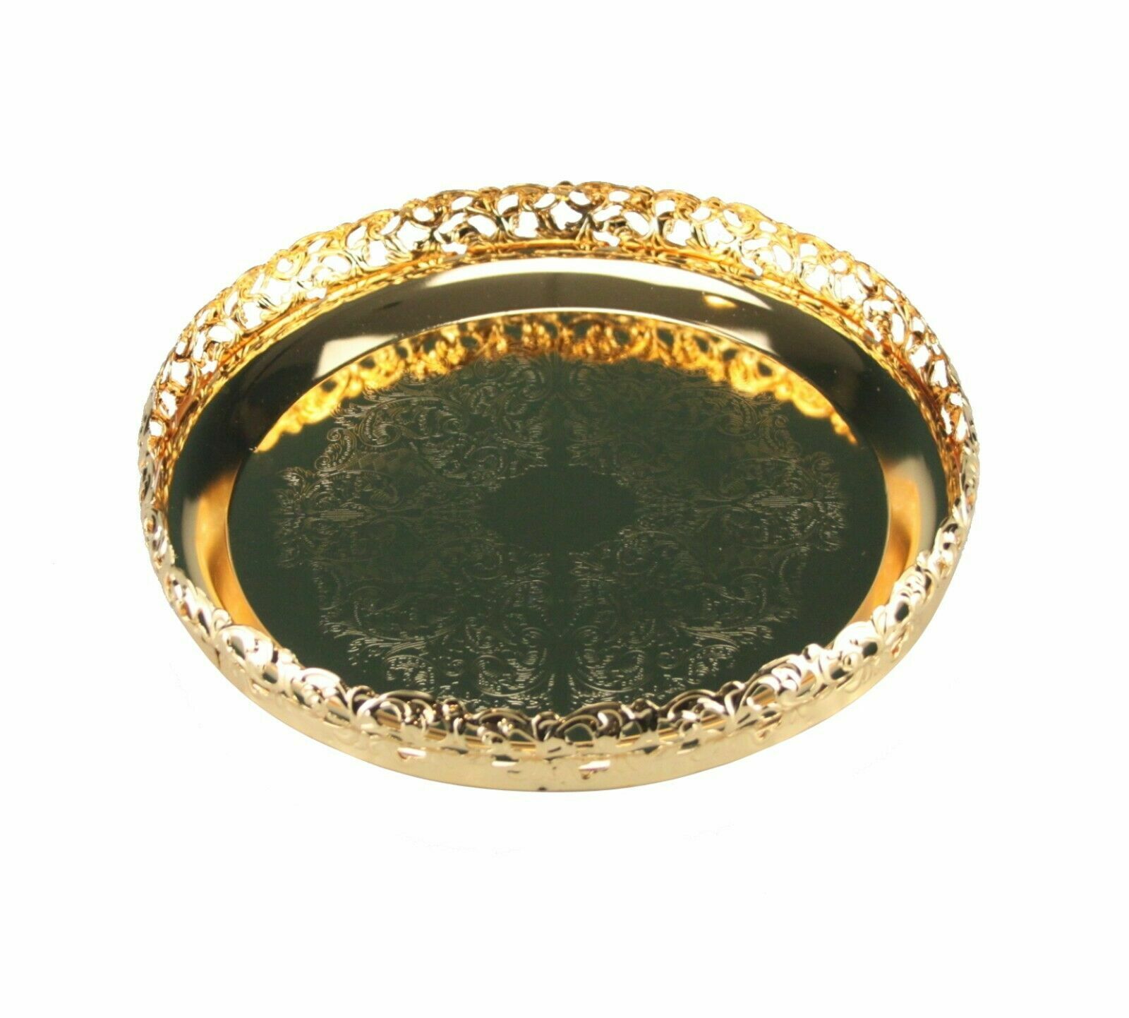 23cm Chrome Gold Plated Pandan Tray Plated Round Platter Serving Tealight Candle