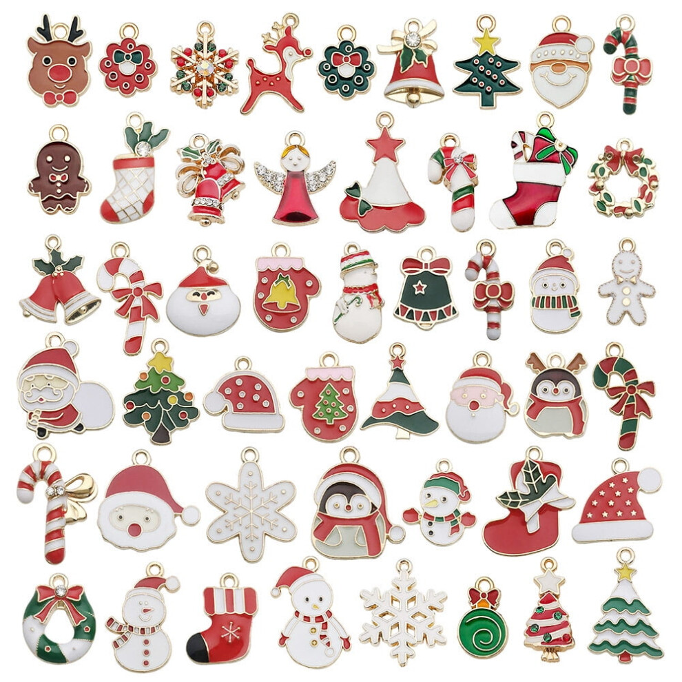 50pcs Christmas Elk & Snowman Enamel Charms for Jewelry Making â Gold-Plated DIY Bracelet/Necklace/Earring Charms, compatible with Pandora