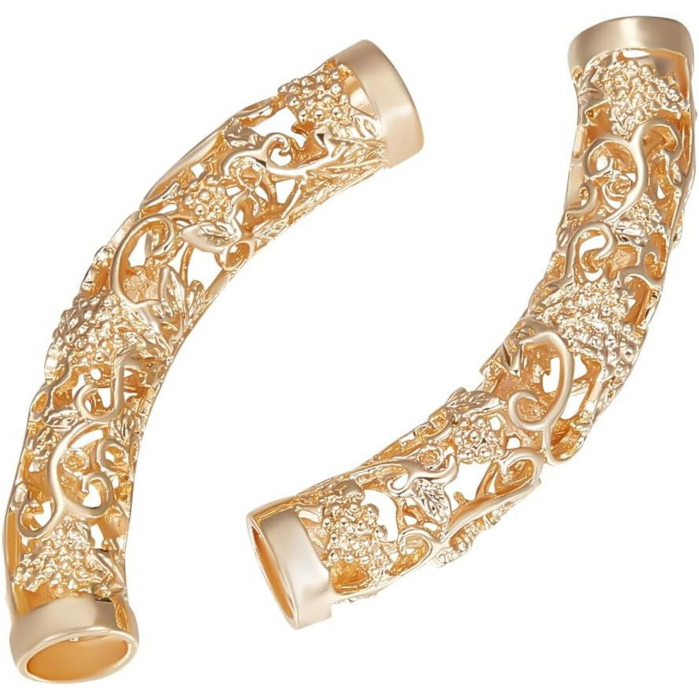 5Pcs Curved Tube Beads, 18K Gold Plated, Tibetan Style, Hollow Slide Noodle Beads, 5.5mm Hole, for Bracelet Making â Compatible with Pandora