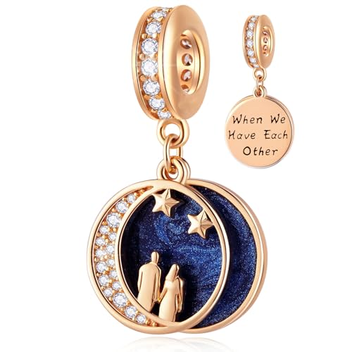 Sister I Love you to the Moon and Back Charm for Pandora Bracelet. Sterling Silver Rose Gold