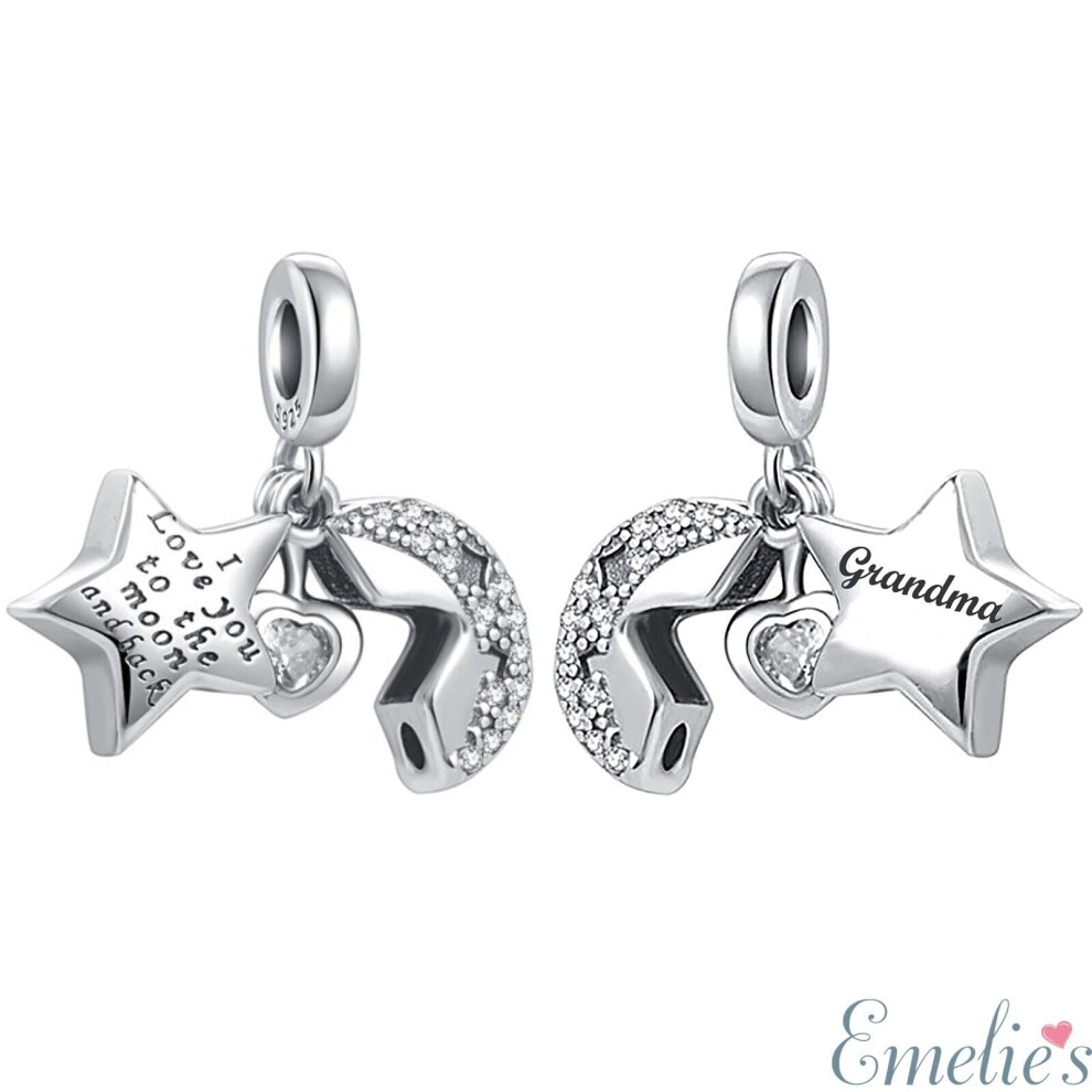 Grandma I Love you to the Moon and Back Charm for Pandora Bracelet. S925 Sterling Silver