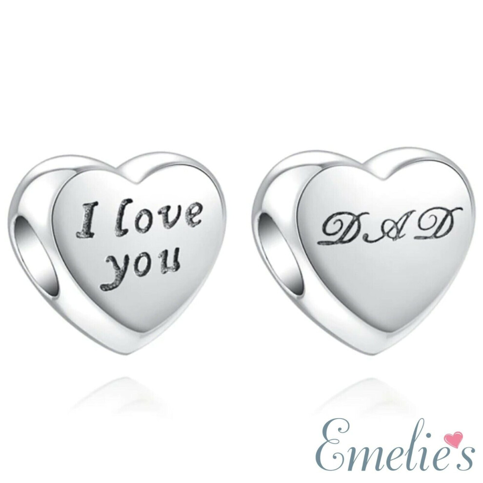 I Love You Dad Charm for Pandora Bracelet. 925 Sterling Silver Father Charm