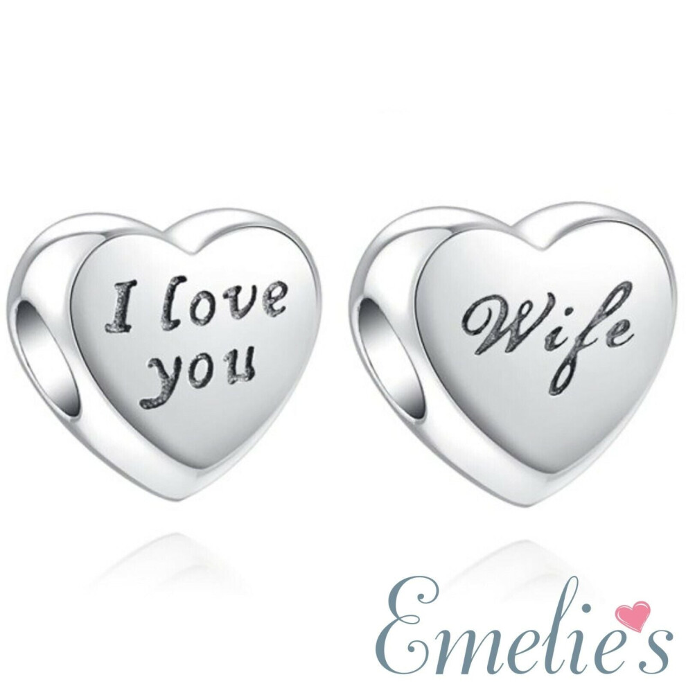 I Love You Wife Charm for Pandora Bracelet. 925 Sterling Silver