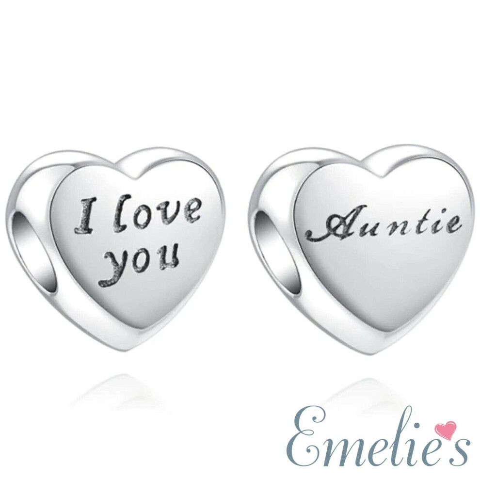 Auntie Charm for Pandora Bracelet. Sterling Silver I Love You Auntie Gift