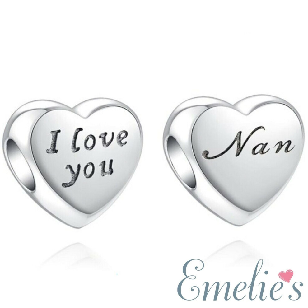 Nan I Love You Charm for Pandora Bracelet. S925 Sterling Silver