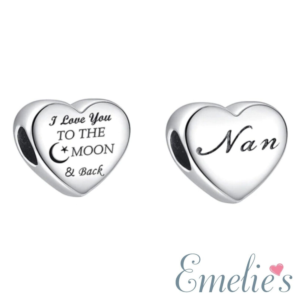Nan I Love you to the Moon and Back Charm for Pandora Bracelet. S925 Sterling Silver