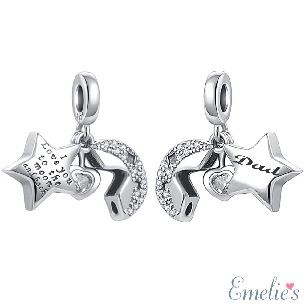 Dad I Love you to the Moon and Back Charm for Pandora Bracelet. S925 Sterling Silver