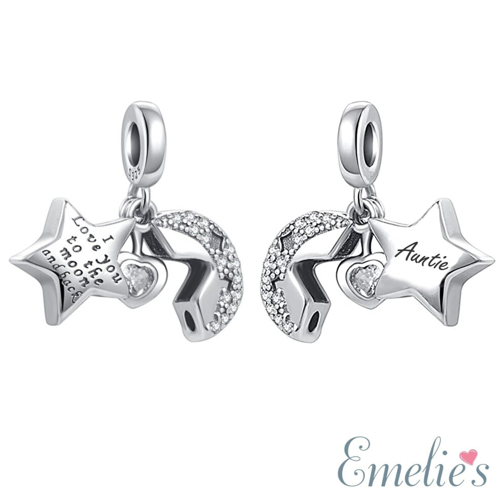 Auntie I Love you to the Moon and Back Charm for Pandora Bracelet. S925 Sterling Silver