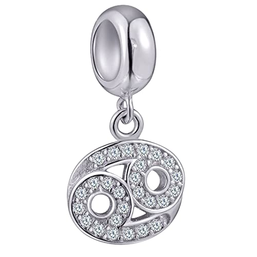 Cancer Zodiac Star Sign Charms fit Pandora Bracelet - 925 Sterling Silver Necklace Pendant, 12 Horoscope Dangling Stone Beads, Gifts for June/July Birthday/Daddy/Nana/Girl/Boy