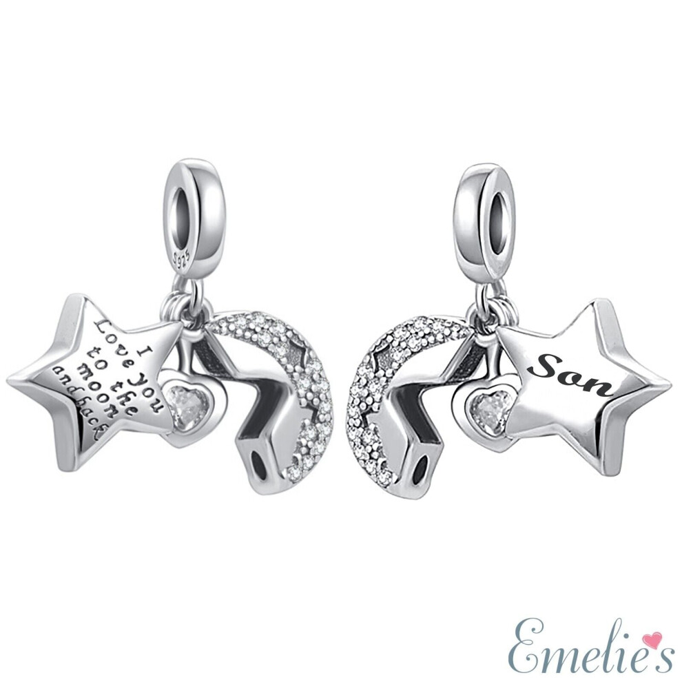 Son I Love you to the Moon and Back Charm for Pandora Bracelet. S925 Sterling Silver