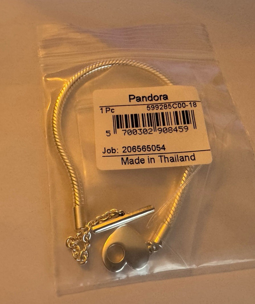 NEW Authentic PANDORA Moments 925 Heart T-Bar Snake Chain Bracelet 599285C00-18