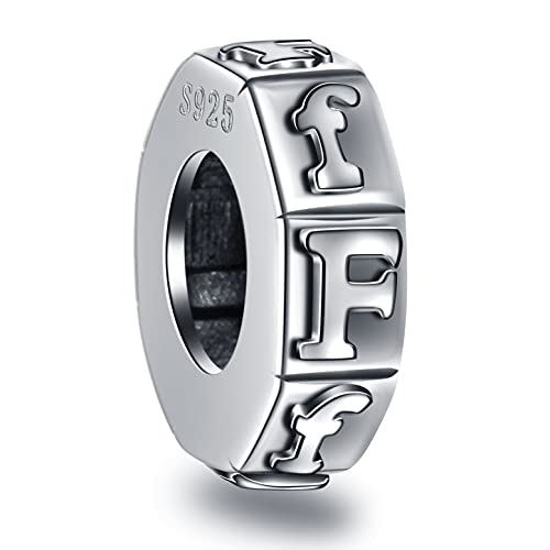 Letter F Spacer Charms, Initial F Alphabet Rubber Stopper Beads in Antique 925 Sterling Silver, fits Pandora DIY Snake Chain, Personalized Gift for Family/Friend/Fathers Day