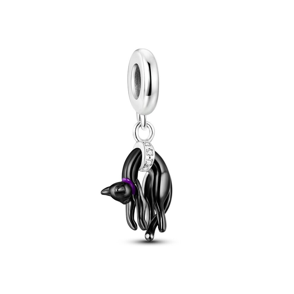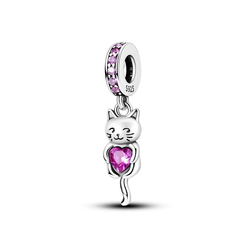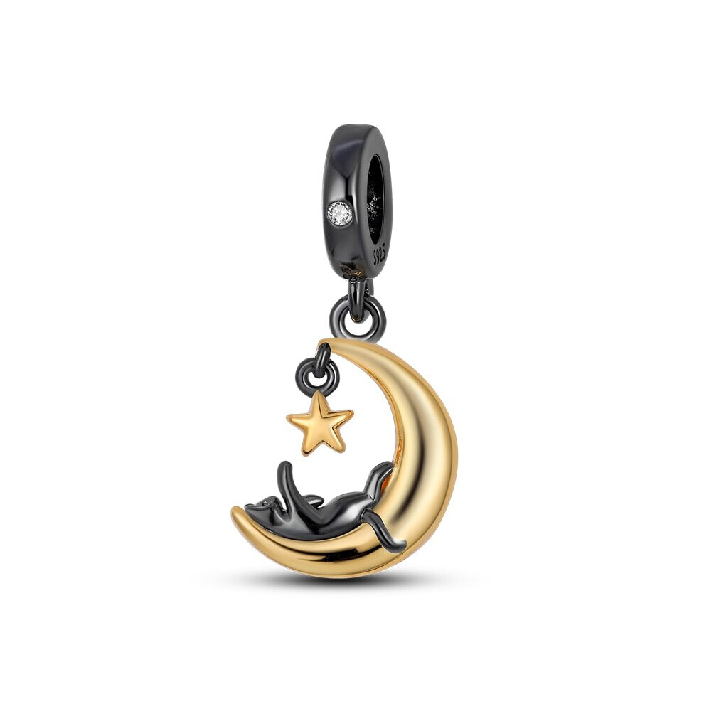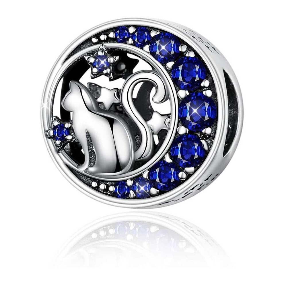 Cat Charms 925 Sterling Silver Pet Animal Star Moon Blue Cubic Zirconia Charm Beads compatible with Pandora Bracelet Necklace