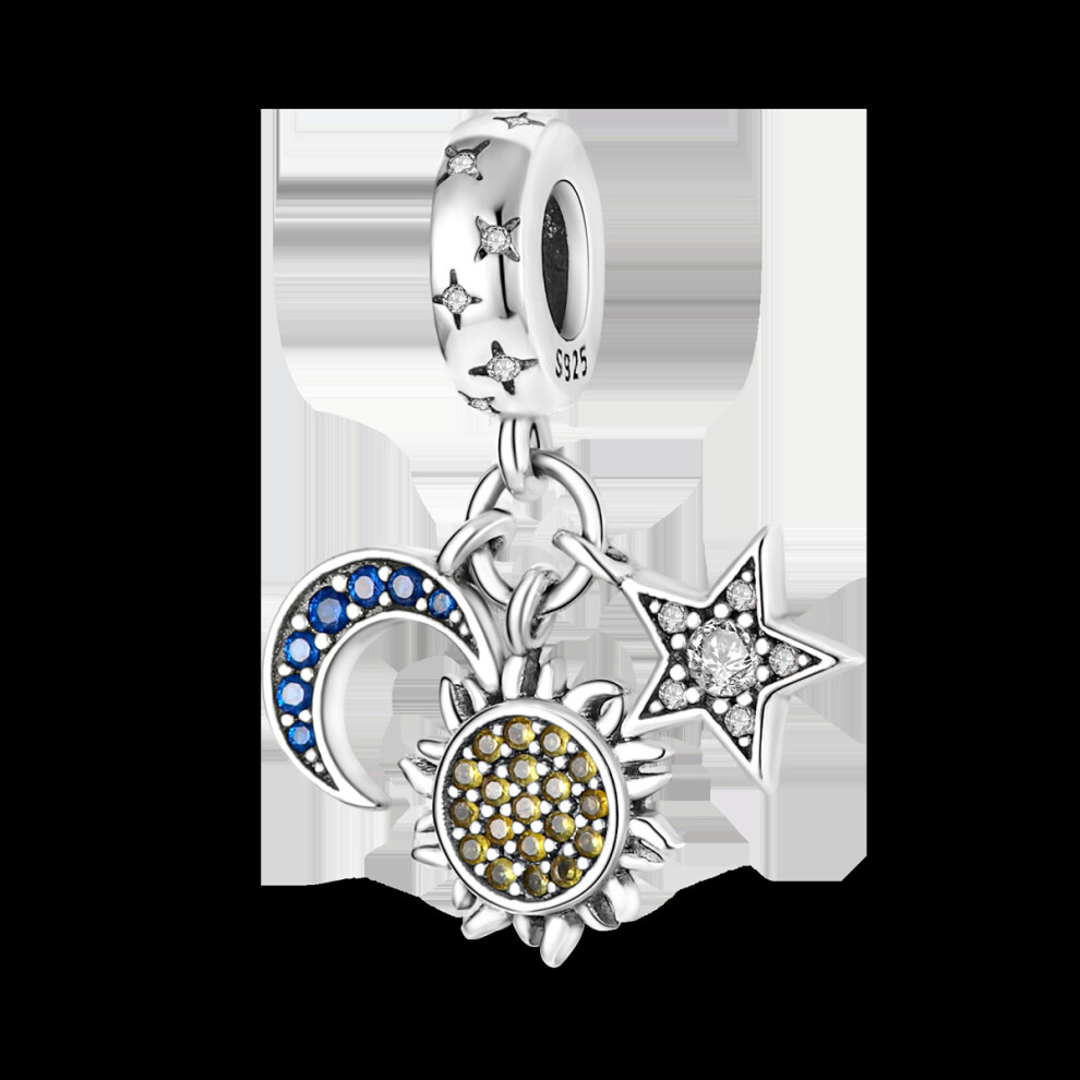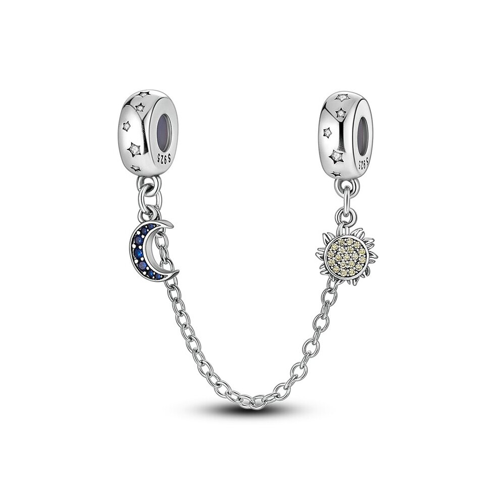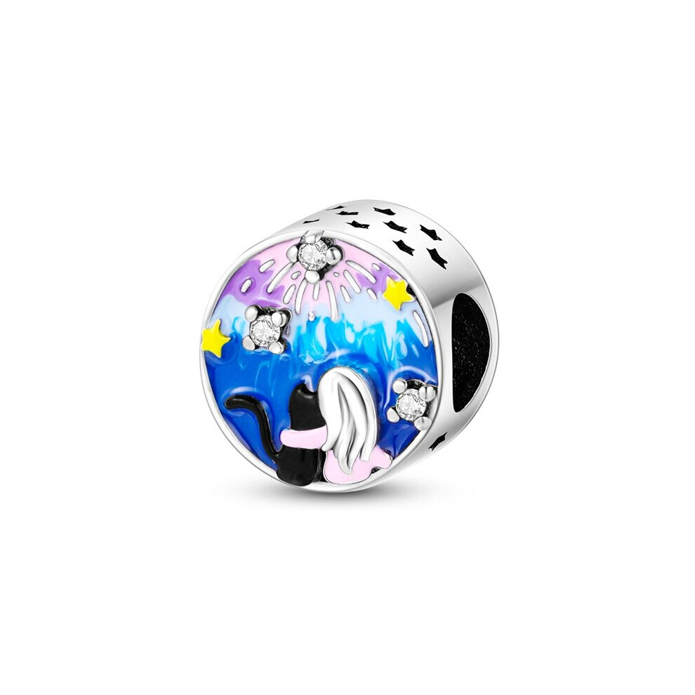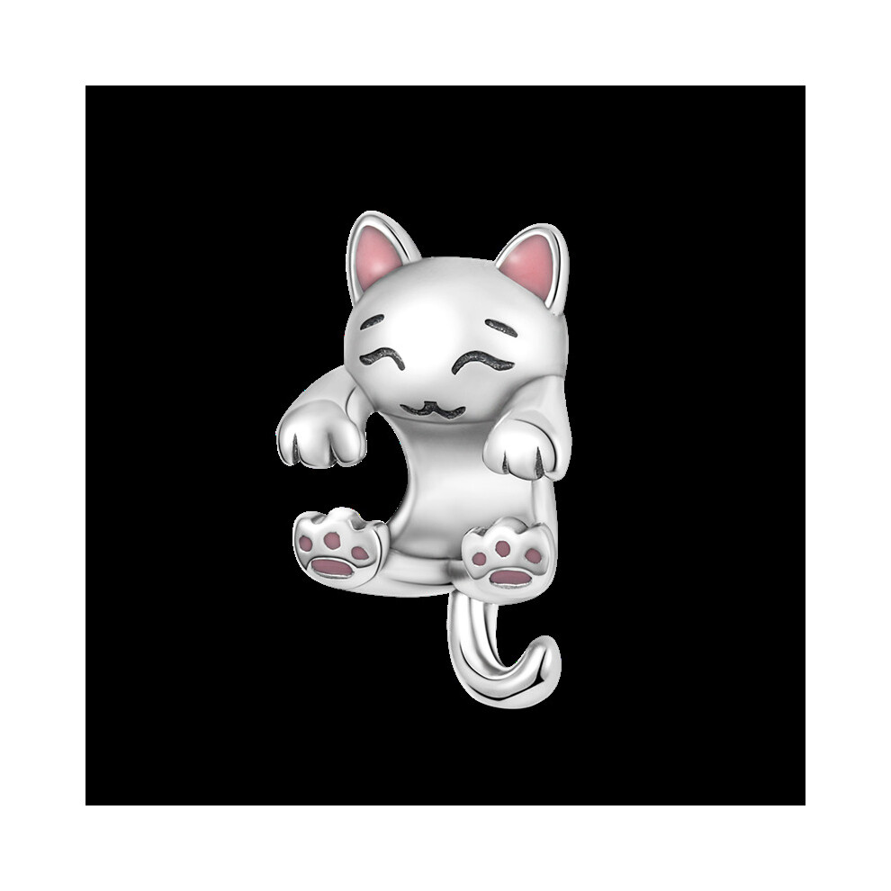 Cat Charms 925 Sterling Silver Pet Animal Star Moon Blue Cubic Zirconia Charm Beads compatible with Pandora Bracelet Necklace
