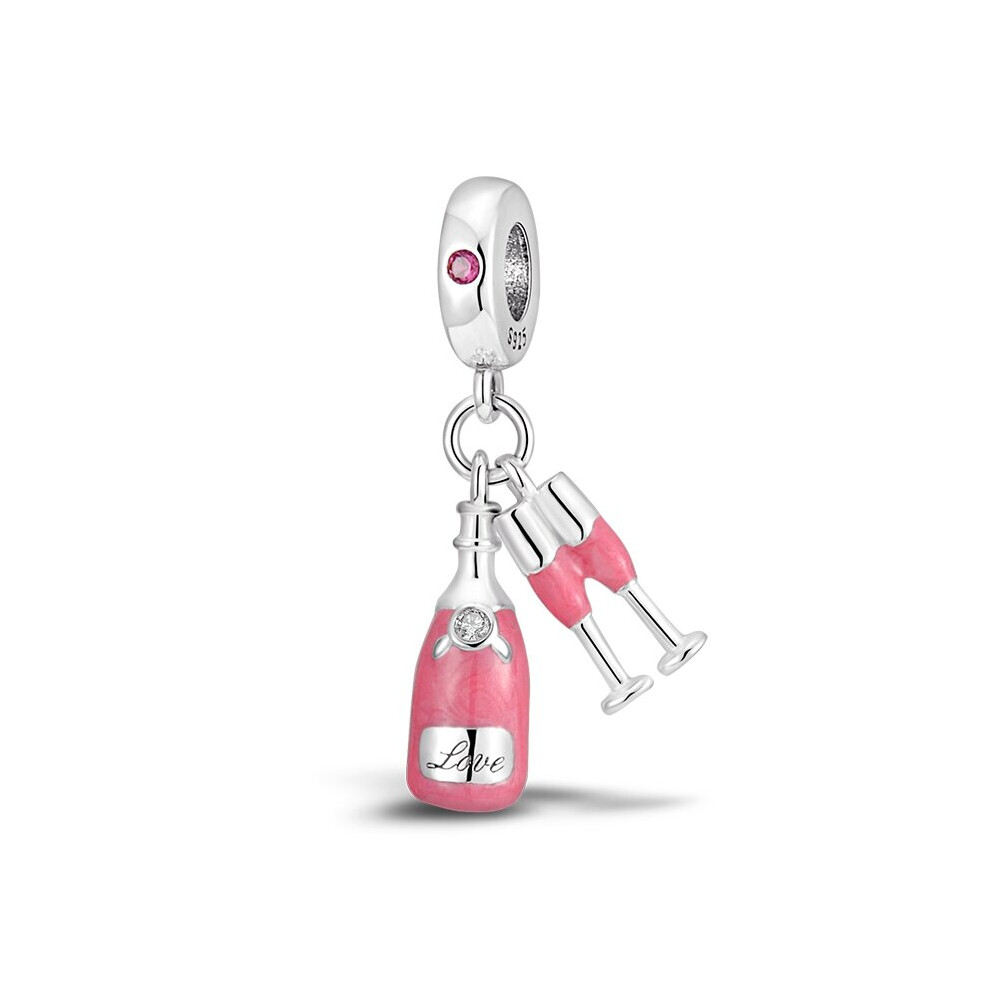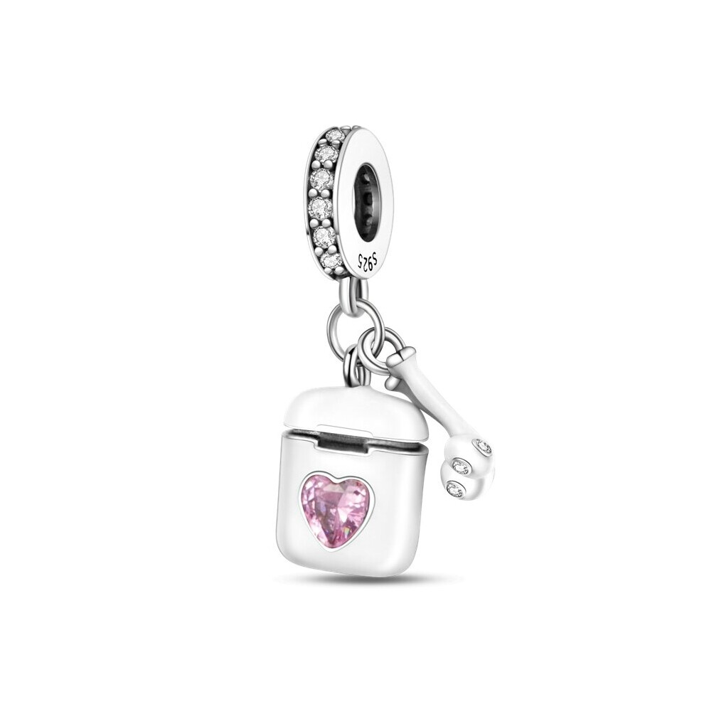 (a-KTC493) 925 Sterling Silver Pink Ballet Skates Shoes Pendant Heart Charms Fit Original Pandora Necklace Bracelet Jewelry Making Women