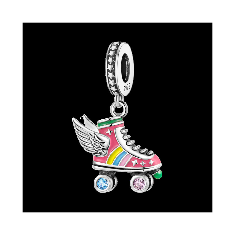 (a-KTC425) 925 Sterling Silver Pink Ballet Skates Shoes Pendant Heart Charms Fit Original Pandora Necklace Bracelet Jewelry Making Women