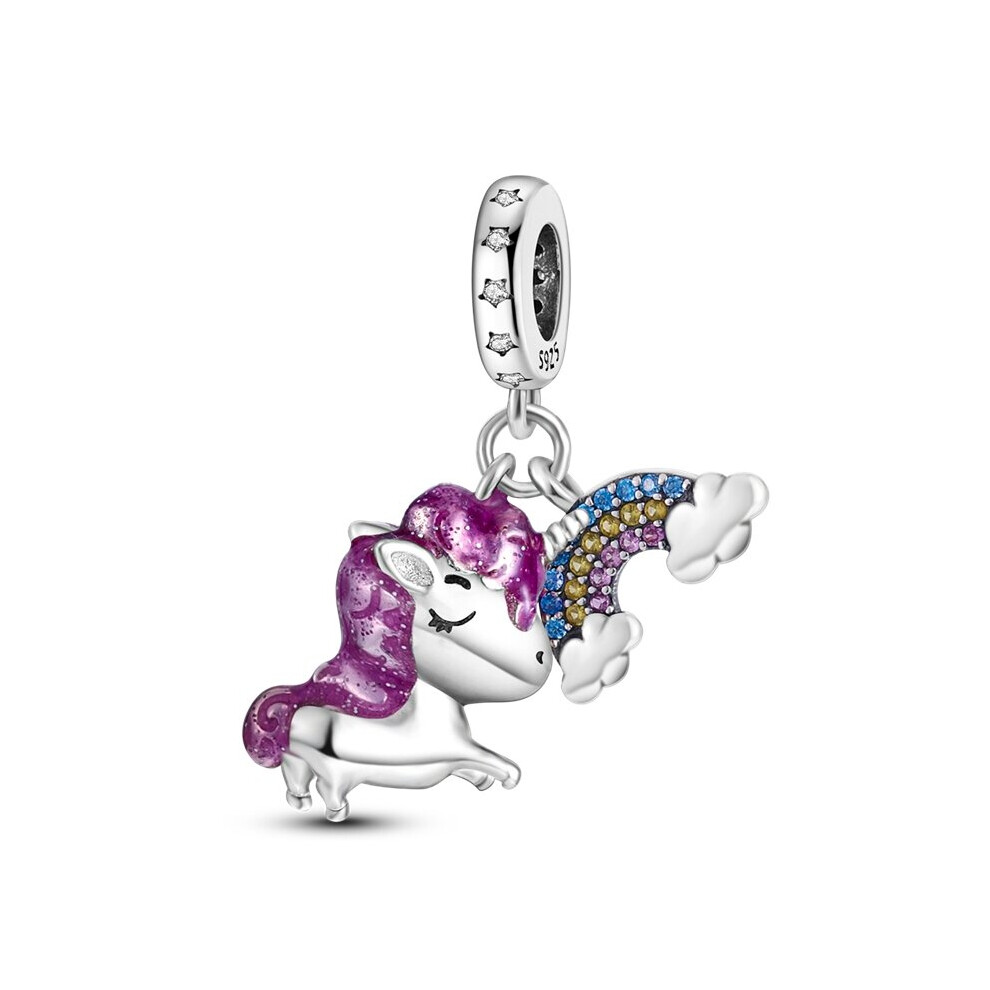 Colorful Enamel Unicorn Charms for Pandora Bracelets 925 Sterling Silver Animal Charms for Bracelets Unicorn Necklace Charm Bracelets for Girls (Pink