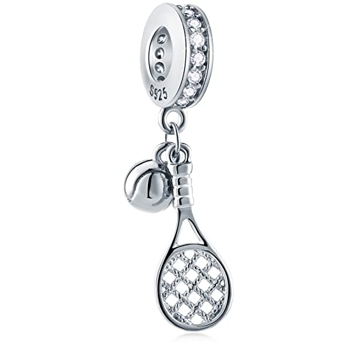 Tennis Ball and Racket Pendant Charms, Fit Pandora Sport Charm Bracelet Necklace, 925 Sterling Silver Dangle Tennis Sparkling CZ Beads, Gift for Boy/Girl or Son/Daughter Birthday