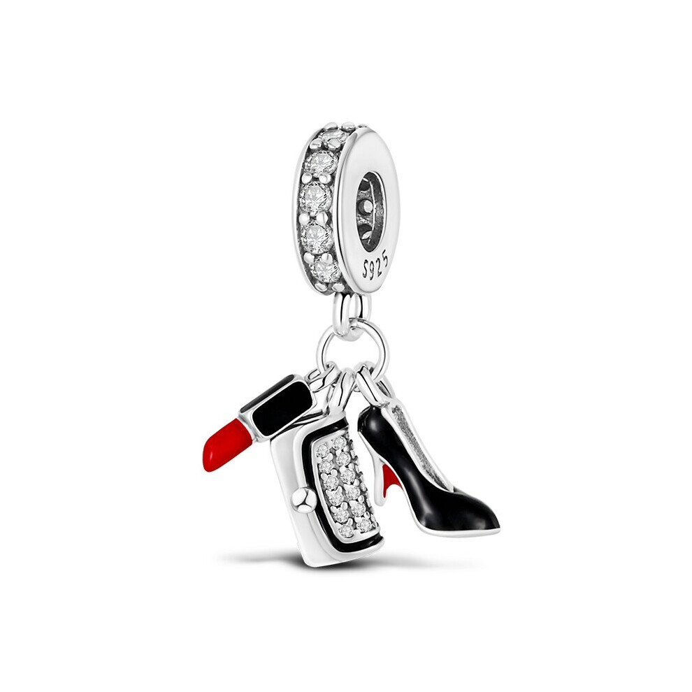 (a-KTC488) 925 Sterling Silver Pink Ballet Skates Shoes Pendant Heart Charms Fit Original Pandora Necklace Bracelet Jewelry Making Women