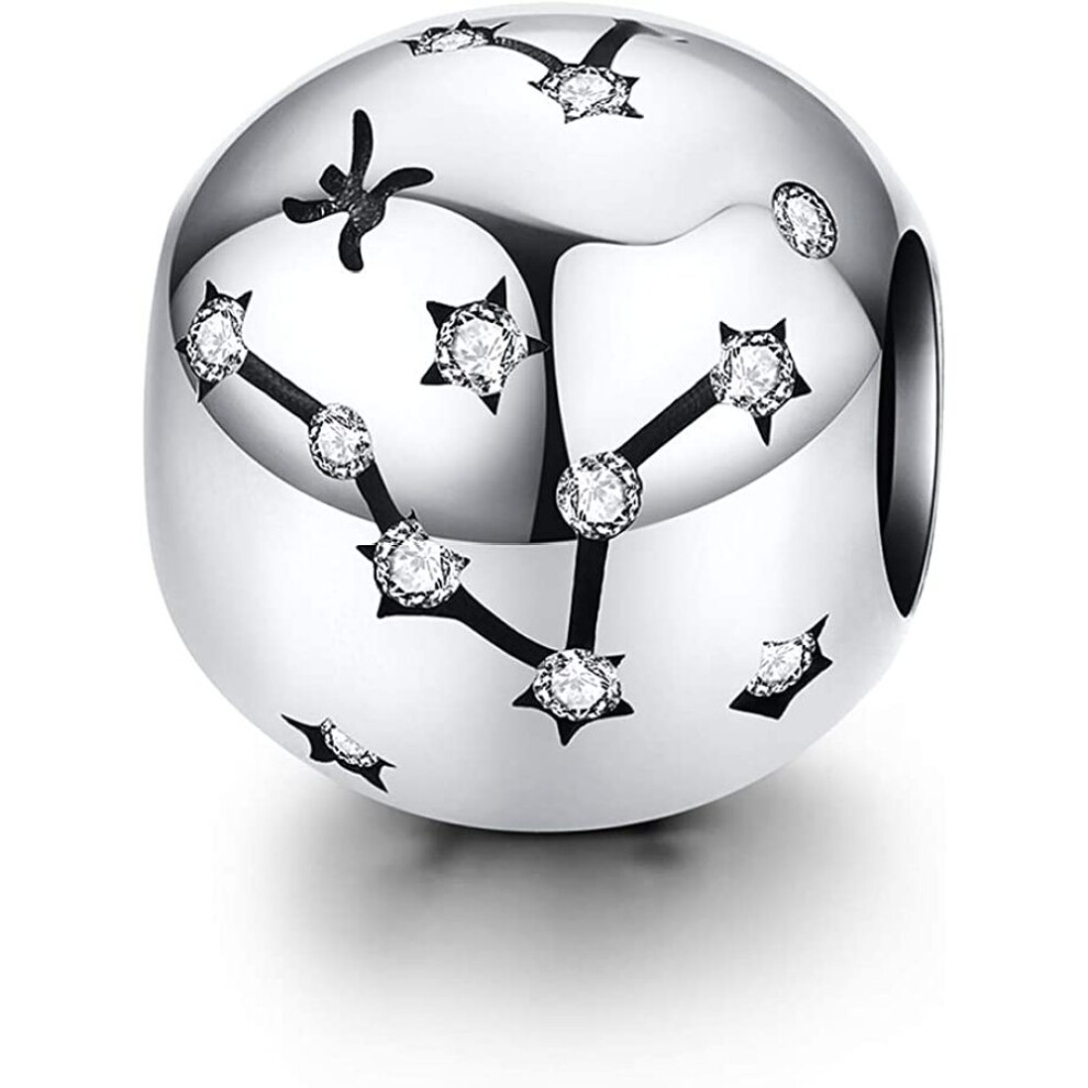 Aries Zodiac Star Sign Charms fit Pandora Charm Bracelet - 925 Sterling Silver Necklace Pendant, 12 Constellation Dangling CZ Beads, Gift for Women/March/April Birthday