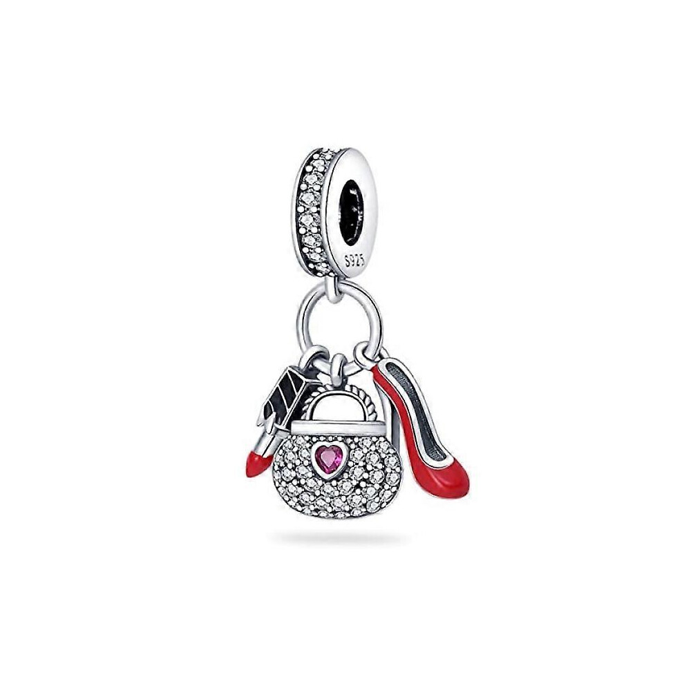 (a-KTC473) 925 Sterling Silver Pink Ballet Skates Shoes Pendant Heart Charms Fit Original Pandora Necklace Bracelet Jewelry Making Women