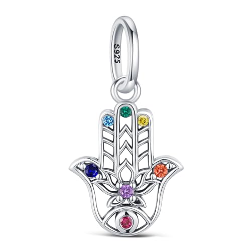 BOIGEGU 925 Sterling Silver Charm for Pandora Bracelet Necklace Lotus Flower 7 Chakra Necklace Charms Yoga Chakra Charm Present Pendants DIY Jewelry for Women