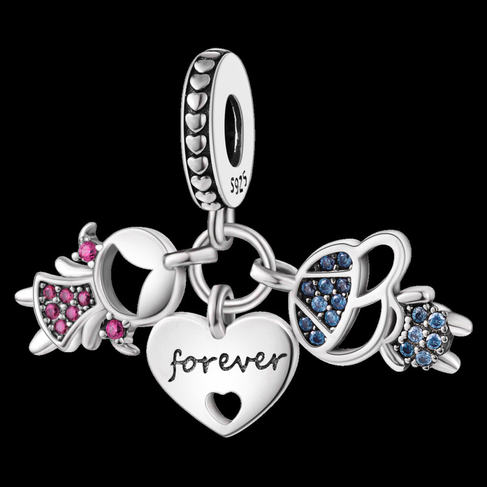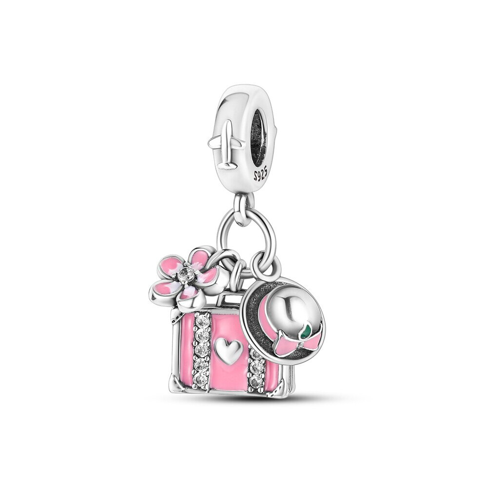 925 Sterling Silver Graduation Cap, Degree and Bouquet Dangle Bead Slider Set Of Charms For Pandora Bracelets Charms Necklace | Cubic Zirconia Bead Slider Charm | Gift Boxed